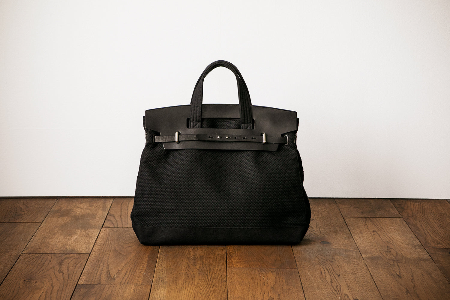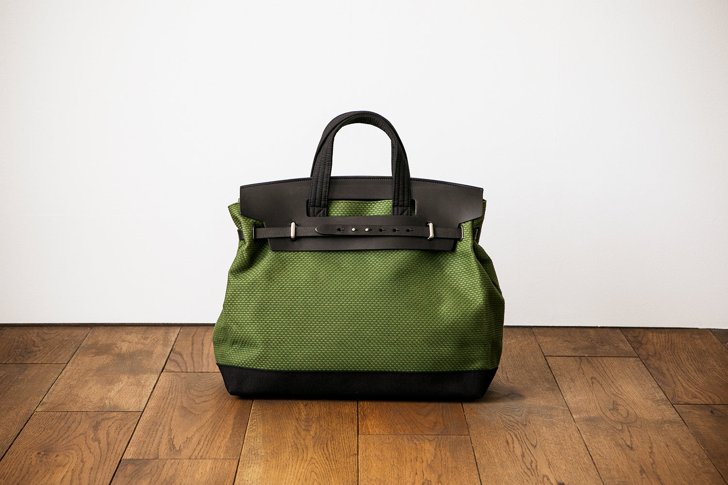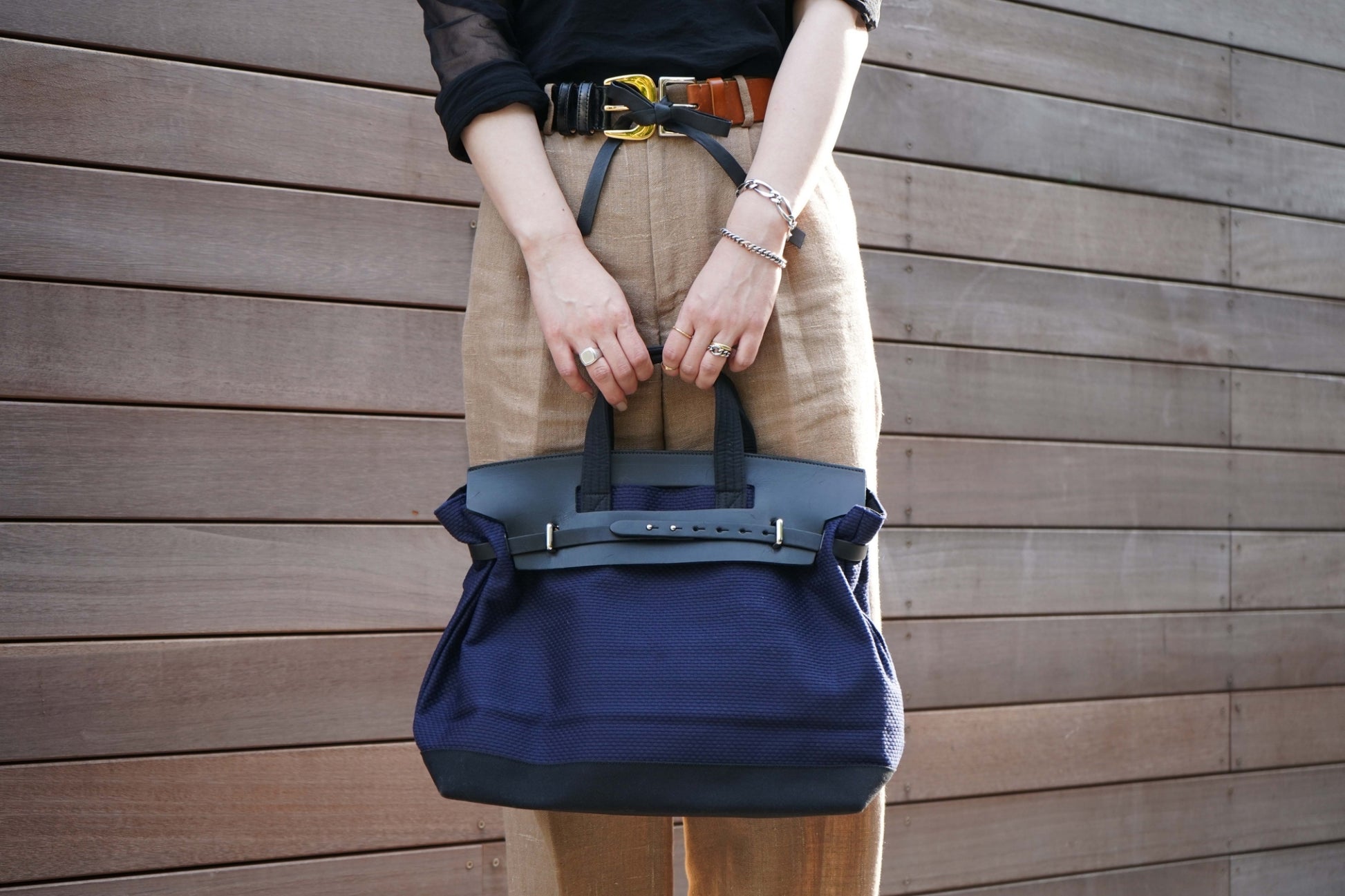 刺し子織生地とレザーのコンビネーションで、使用していくうちにレザーと刺し子生地の経年変化を共に楽しめます。