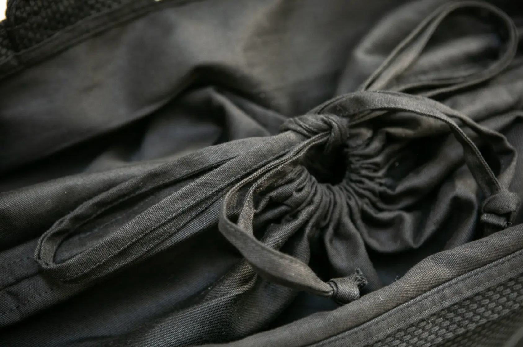 中身が見えないよう、バッグ入口に巾着が付いています。