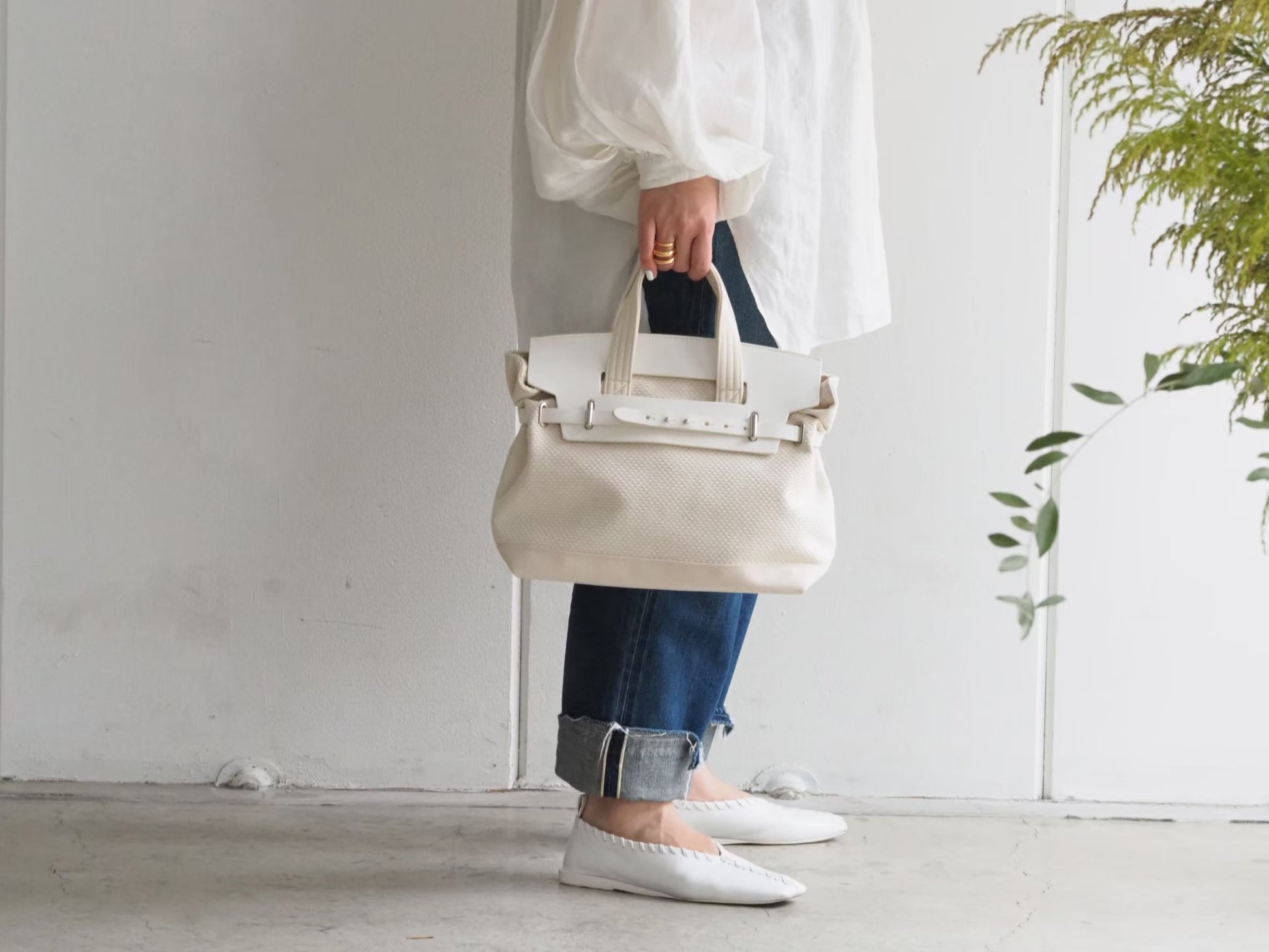 ///// レザーを使用している製品について ///// CaBasはフルタンニンなめしによる、自然の風合いを生かした牛革を使用しております。生産時にできるだけ傷は避けて使用しておりますが、フルタンニンなめし特有の自然の風合いとしてそのまま使用している箇所もございます。フルタンニンなめし特有のテクスチャーとして、風合いをお楽しみ下さい。また、底マチやフラップ裏側等に革の厚みを揃えるためにスライスした残革と、更に均一に揃えた床革を使用している箇所がございます。和紙のようなテクスチャーを持つ、床革の風合いをお楽しみください。